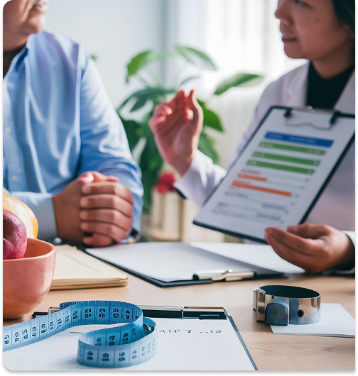 La consulta médica está enfocada en la evaluación y diagnóstico del estado de salud del paciente, brindando atención integral en conjunto con el área de nutrición. Incluye: Historia clínica y evaluación de síntomas, Diagnóstico y tratamiento de enfermedades relacionadas con la nutrición (diabetes, hipertensión, dislipidemias, entre otras), Prescripción de medicamentos si es necesario, Recomendaciones de estilo de vida y derivaciones a otros especialistas si se requiere.